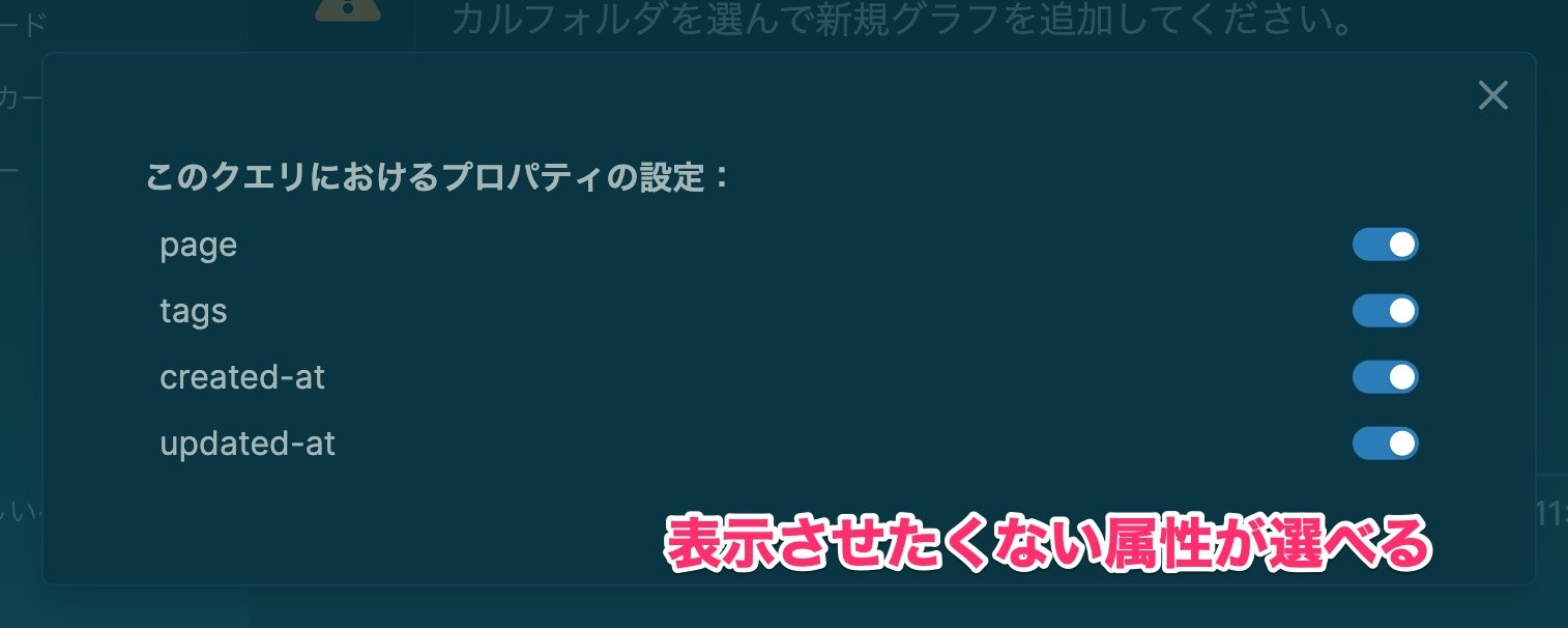 なお、表示させたくない余計な属性は、歯車アイコンから表示・非表示を切り替えることができます。