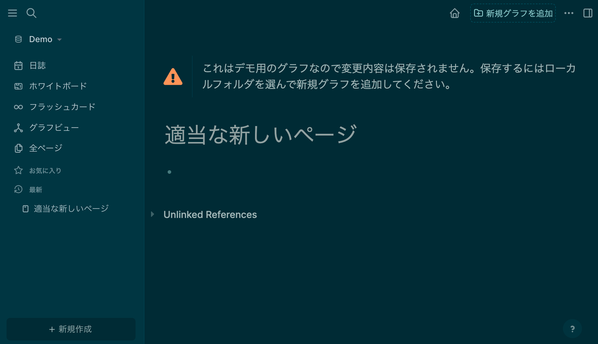 Logseqはアプリをダウンロードしなくても、demo.logseq.comをブラウザから開けば試用することができます。今回はこれを使って説明していきます。